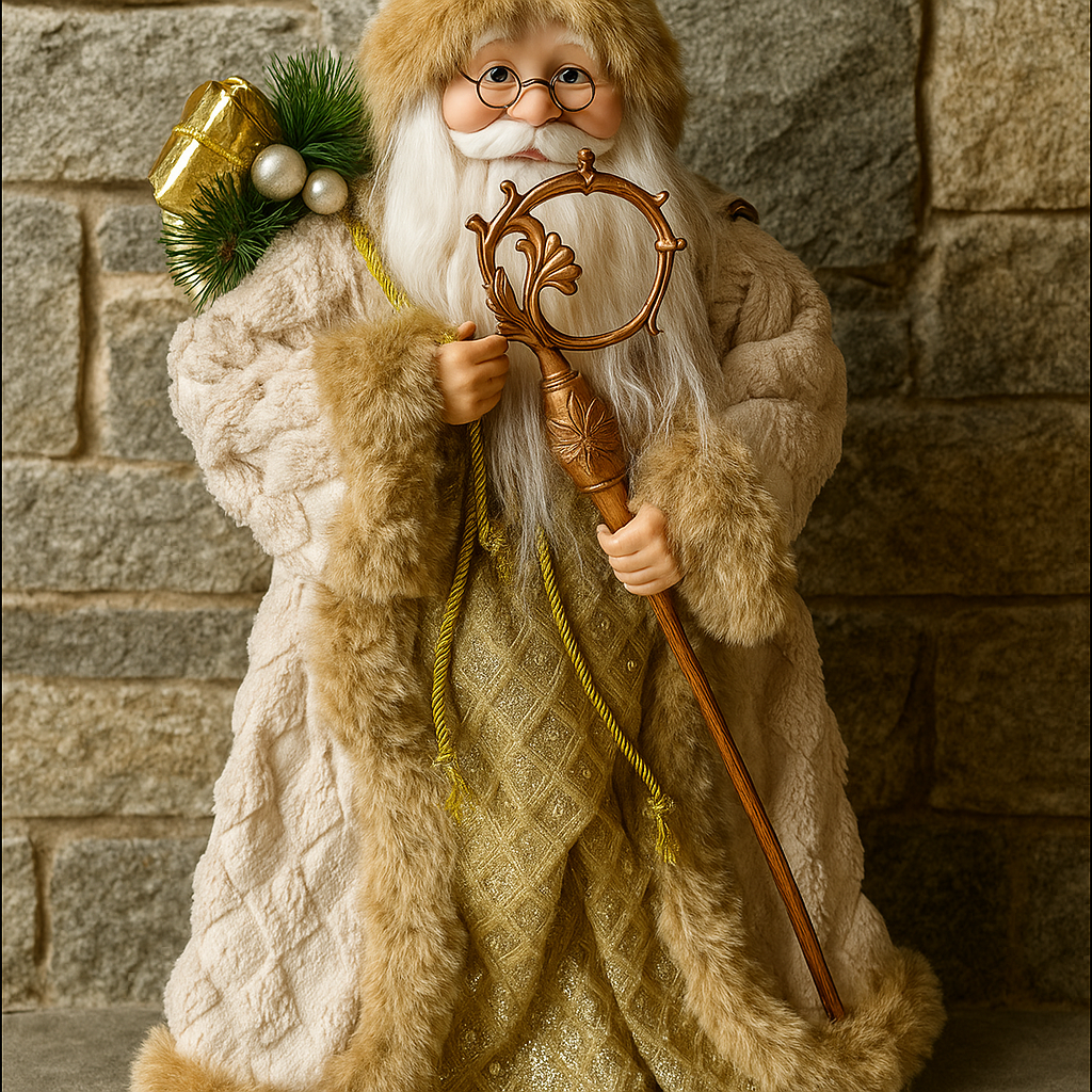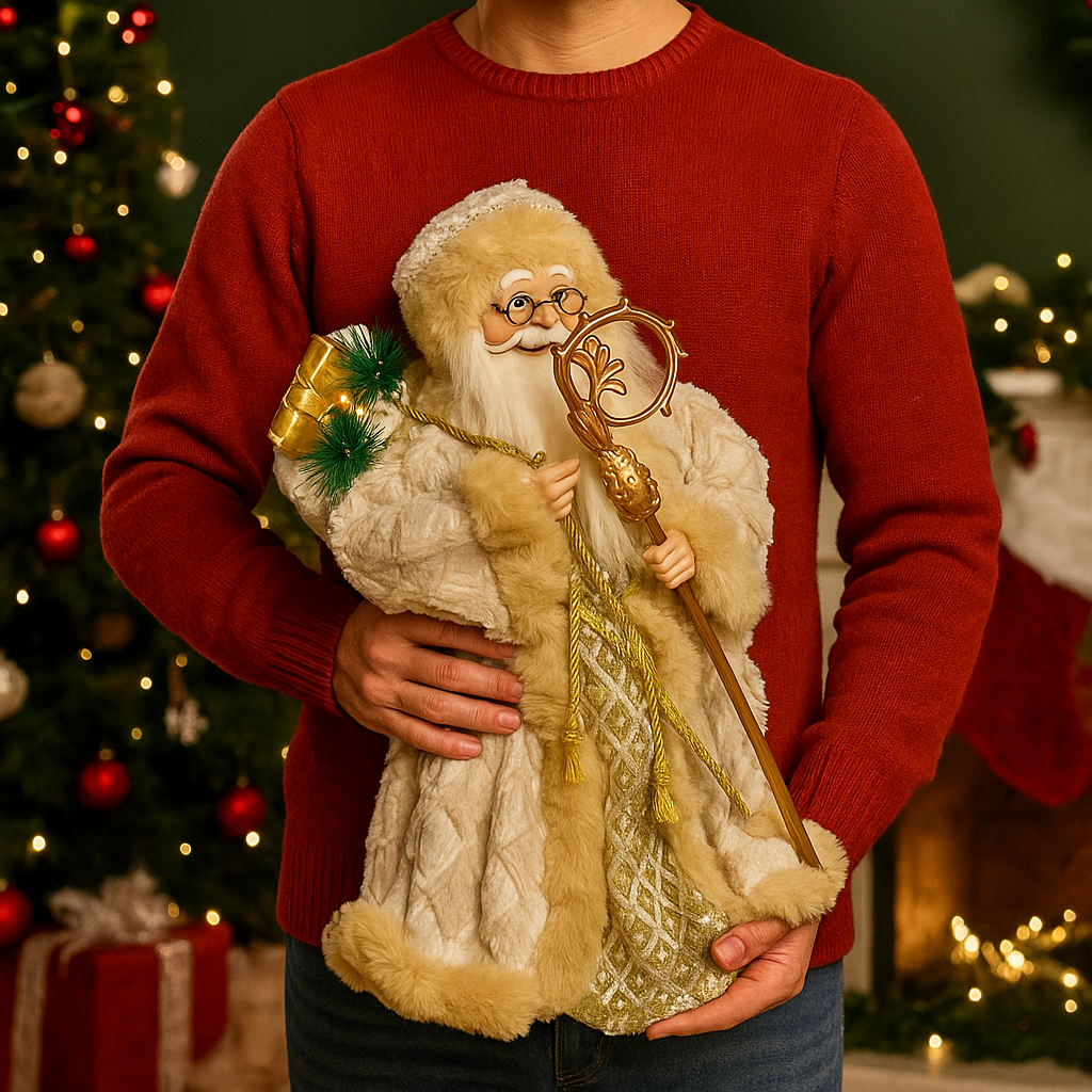 On the first chilly night of December, the lights went dim and the room fell quiet. Then we set him down—our golden Santa—by the tree. The hush turned into warm smiles. Someone gasped at the velvet-like coat, another traced the gentle curve of his staff, and suddenly the living room wasn’t just a room anymore—it was Christmas. The kind you remember years later.